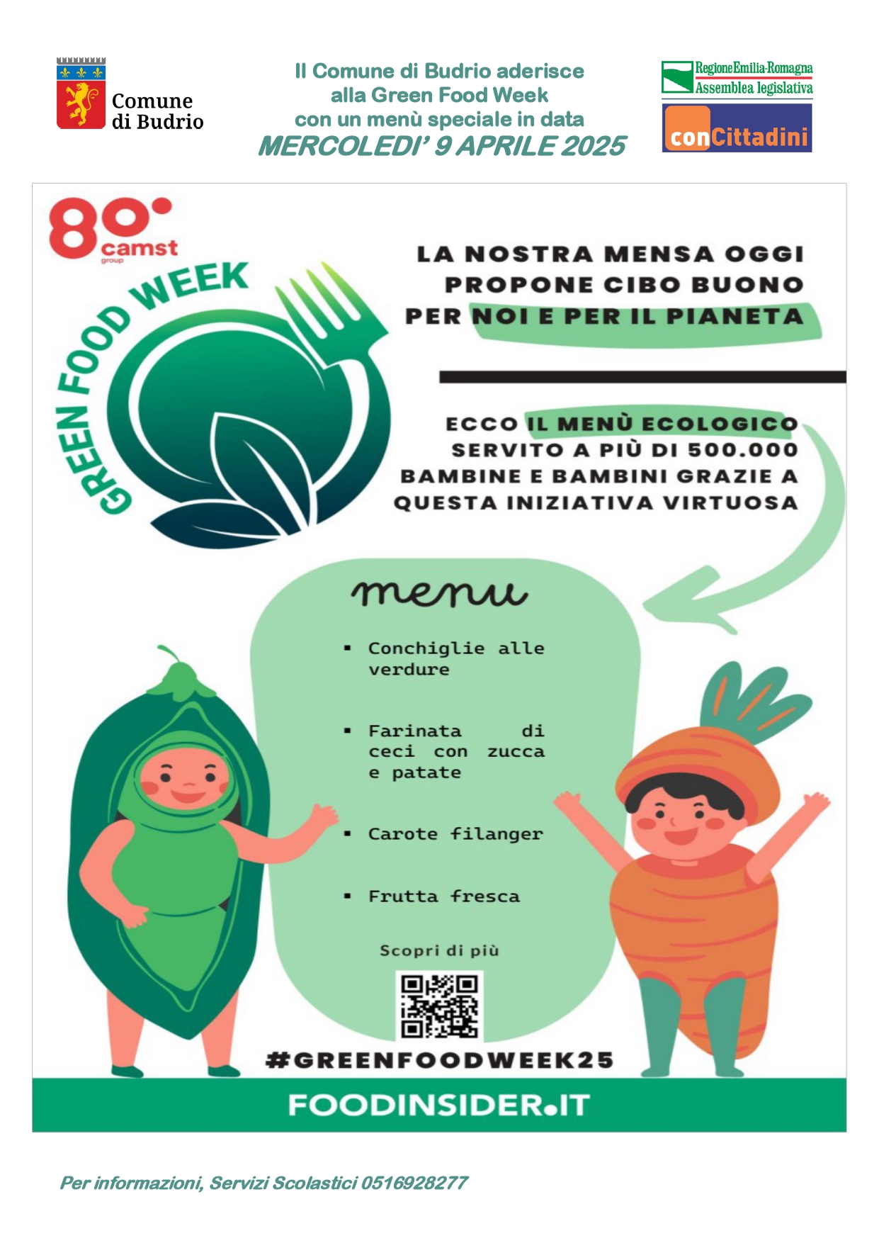 In occasione della GREEN FOOD WEEK nelle mense scolastiche verrà servito un menù speciale